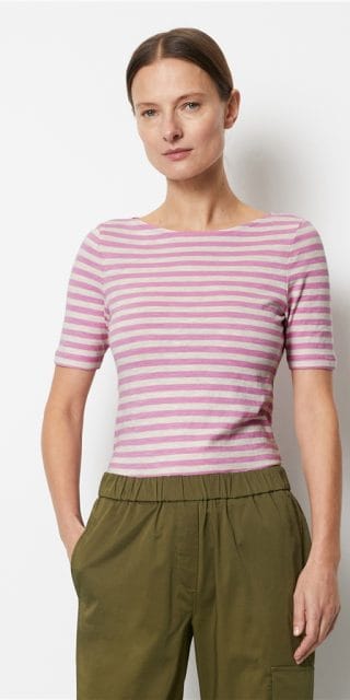 Marc O Polo Striped T-Shirt Slim -Made From Organic Cotton Jersey -Multi Berry Lilac