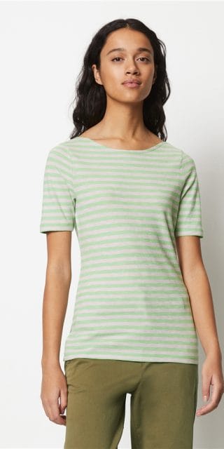 Marc O Polo Striped T-Shirt Slim -Made From Organic Cotton Jersey-Multi/ Pure Mint